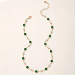Ακτινοβολώντας διαχρονική κομψότητα, αυτό το κολιέ διαθέτει έναν ζωντανό σμαραγδένιο πράσινο τεχνητό κρύσταλλο που αιχμαλωτίζει το φως με κάθε κίνηση—ιδανικό για να προσθέσει μια πινελιά πλούσιου χρώματος σε κάθε εμφάνιση.