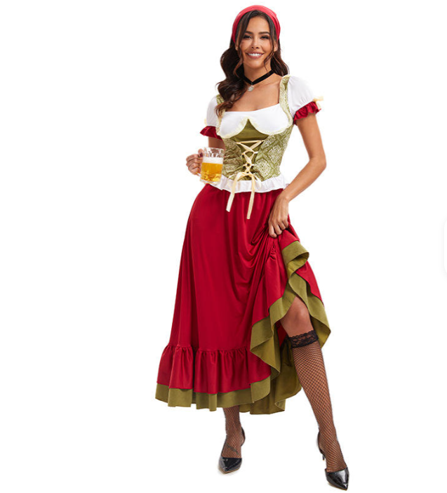 Αυτό το μακρύ παραδοσιακό φόρεμα dirndl είναι η τέλεια σύνθεση του διαχρονικού βαυαρικού στυλ και της σύγχρονης κομψότητας. Με τον σφιχτό κορσέ και τη ροή φούστα, προσφέρει άνεση και κολακευτική σιλουέτα, καθιστώντας το ιδανική επιλογή για το Oktoberfest και άλλες πολιτιστικές εκδηλώσεις.