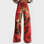 Ένα παντελόνι που αφηγείται μια ιστορία δύναμης και ελευθερίας μέσα από την καλλιτεχνική απεικόνιση ενός αναβάτη σε δράση. Ιδανικό για γυναίκες που αγαπούν να ντύνονται με πάθος, ένταση και προσωπικότητα.