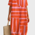 Νιώσε σαν το καλοκαίρι με αυτό το καλλιτεχνικό φόρεμα. Με γυμνά πόδια στην ζεστή άμμο και απαλό, ελαφρύ ύφασμα που χορεύει στον αέρα, αυτό το κομμάτι φέρνει ελευθερία, ομορφιά και άνεση σε κάθε βήμα. Άγρια ελεύθερο, αναμφισβήτητα εσύ.