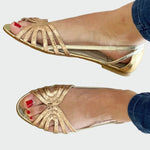 Ανακαλύψτε κομψότητα και άνεση με αυτά τα χρυσά σανδάλια σε slingback στυλ. Ο εκλεπτυσμένος σχεδιασμός τους με διακριτικά λουράκια δημιουργεί ένα ανοιχτό και κομψό αποτέλεσμα που αναδεικνύει το πόδι.