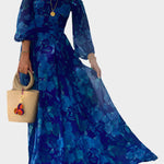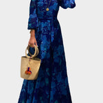 Το μακρύ φόρεμα με ακάλυπτους ώμους και λουλουδάτο μοτίβο σε βαθύ μπλε χρώμα συνδυάζει ρομαντισμό και καλοκαιρινή φινέτσα. Ιδανικό για βόλτες στο νησί, κοκτέιλ πάρτι ή καλοκαιρινές αποδράσεις.