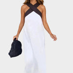 προσφέρει διαχρονική φινέτσα σε μια μοντέρνα εκδοχή. Με εντυπωσιακό σταυρωτό μπούστο σε nude και navy απόχρωση, δημιουργεί μια θηλυκή σιλουέτα που τραβά τα βλέμματα σε κάθε εμφάνιση.