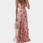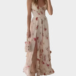 εντυπωσιάζει με την ανάλαφρη γραμμή του, το βαθύ ντεκολτέ και τη ρομαντική του αίσθηση. Η θηλυκή σιλουέτα, η κομψή σχισμή και τα κυματιστά τελειώματα το καθιστούν ιδανική επιλογή για καλοκαιρινές βόλτες και ιδιαίτερες περιστάσεις.
