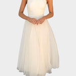 • Ευρύχωρη φούστα από τούλι: Μαλακή, ανάλαφρη και ογκώδης για ένα παραμυθένιο αποτέλεσμα.