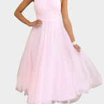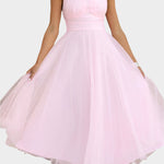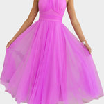 Το Ροζ Φόρεμα από Τούλι με Ψηλό Λαιμό είναι η επιτομή της γυναικείας κομψότητας. Κατασκευασμένο σε έντονο λαμπερό ροζ και διακοσμημένο με ευρύχωρη φούστα από τούλι, αυτό το φόρεμα θα σε κάνει να νιώσεις σαν πριγκίπισσα σε κάθε εκδήλωση.
