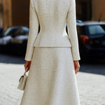Λευκό Σακάκι από Τούλι με Τετράγωνη Λαιμόκοψη & Σετ Φούστας A-Line