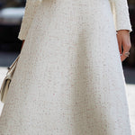 Το ύφασμα του τουλιού, ελαφρώς σκεπασμένο για διάσταση, προσφέρει τόσο υφή όσο και διαχρονική γοητεία. Ιδανικό για μεσημεριανά γεύματα, επαγγελματικές υποχρεώσεις ή βόλτες στην πόλη, αυτό το σετ αποτυπώνει την ουσία της καλοσυνάτης κομψότητας. Συνδυάστε το με κοσμήματα από πέρλες και μια δομημένη τσάντα χειρός για να τονίσετε τη γοητεία που εμπνέεται από το Παρίσι—τέλειο για γυναίκες που εκτιμούν την εκλεπτυσμένη πολυτέλεια στην καθημερινή τους εμφάνιση.