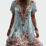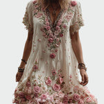 Φόρεμα σε Βίντατζ στυλ με κοντό μανίκι και Κομψό Λουλουδάτο Κέντημα