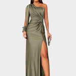 • Elegant One-Shoulder Cut: A unique asymmetrical neckline that adds a bold and refined edge.