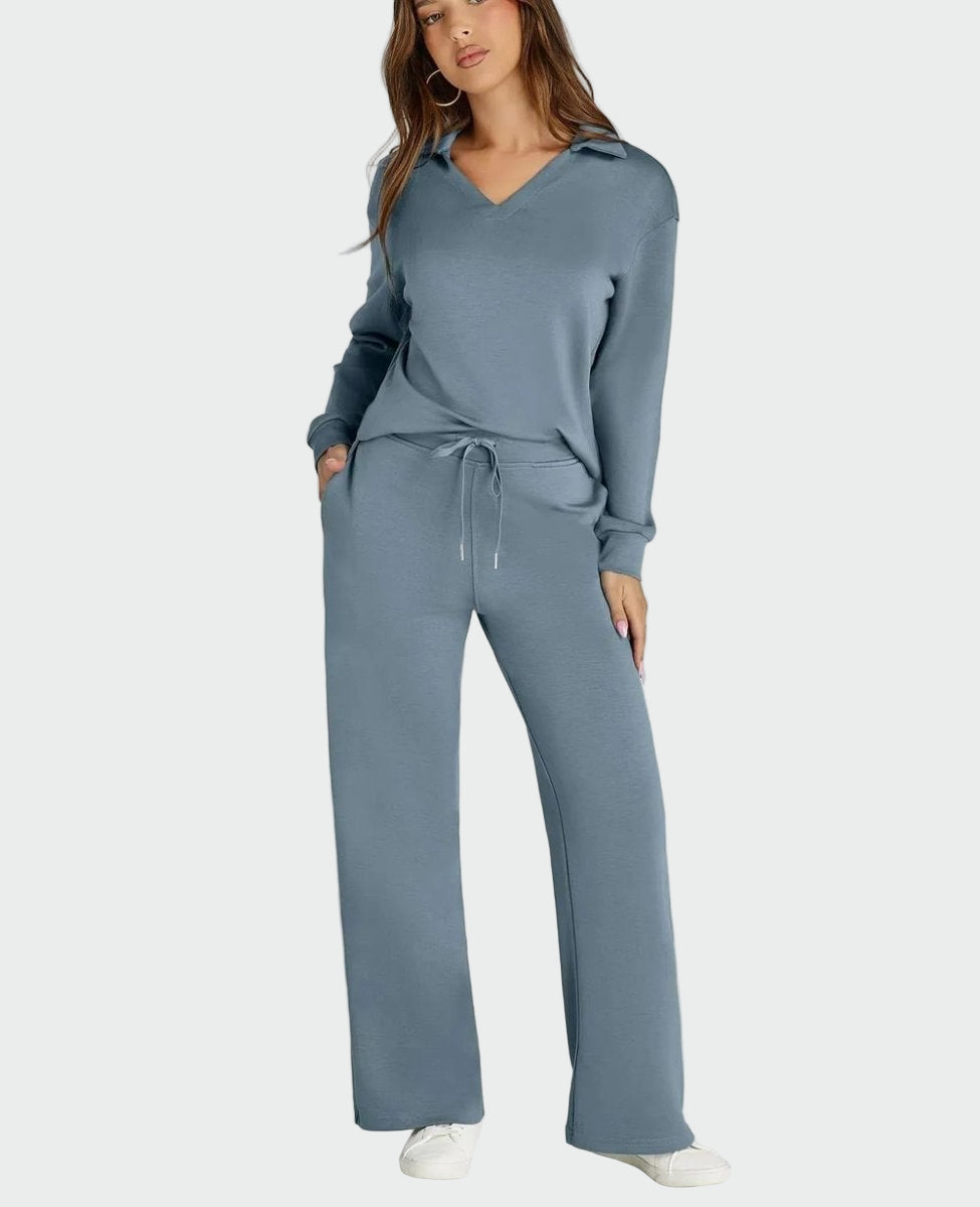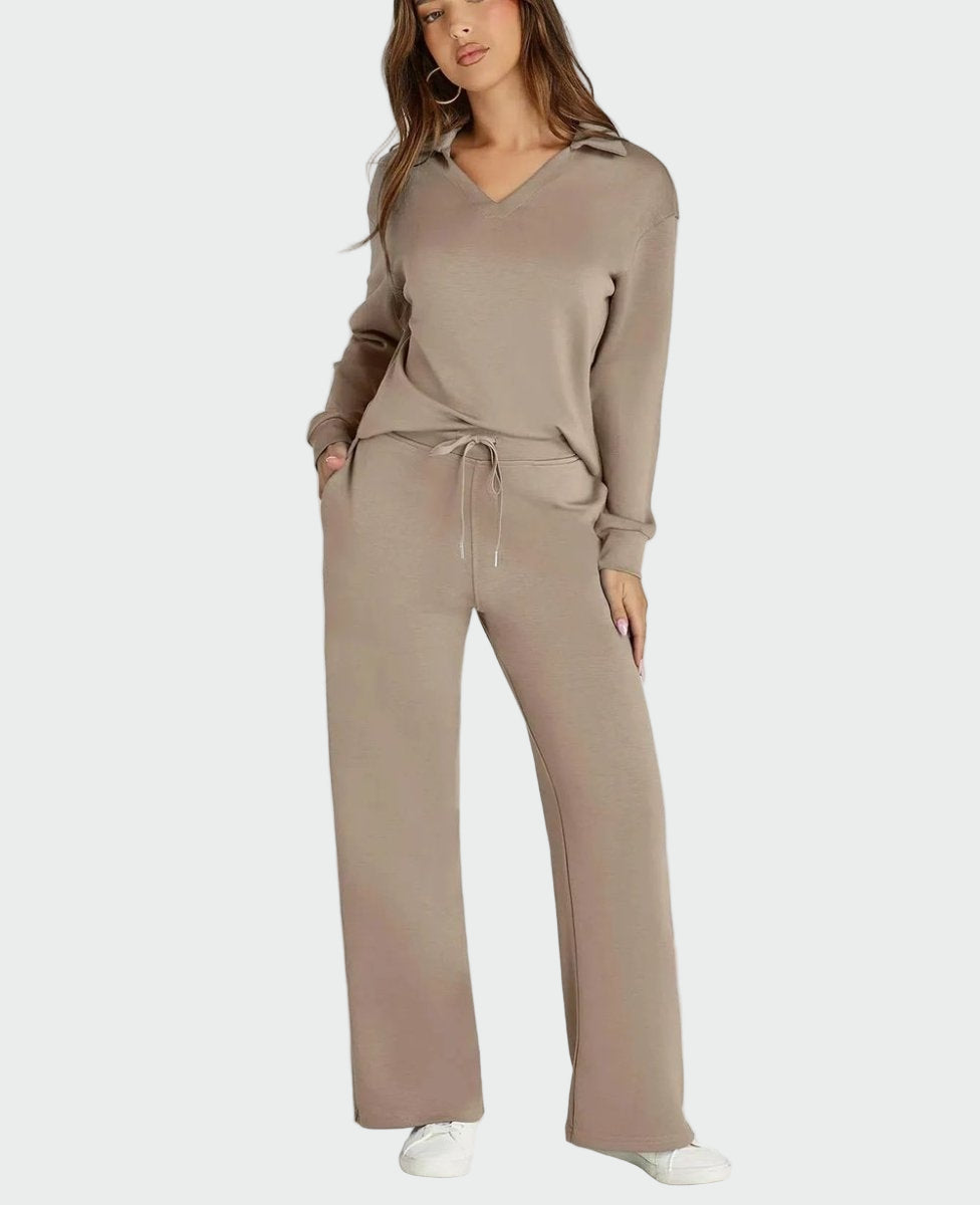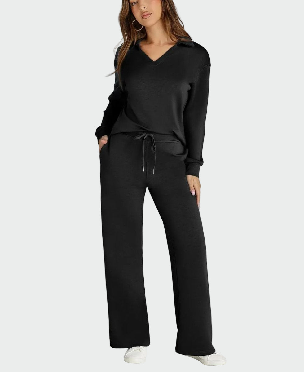 Ένα πρακτικό και κομψό σετ που έχει σχεδιαστεί για άνεση κατά τη διάρκεια των ταξιδιών. Η χαλαρή εφαρμογή του χαρίζει ελευθερία κινήσεων, ενώ το minimal στυλ του το καθιστά ιδανικό για καθημερινή χρήση αλλά και πιο ιδιαίτερες περιστάσεις. Συνδυάζει άνεση και διαχρονική κομψότητα.