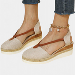 Εμπνευσμένα από τη φρεσκάδα του καλοκαιριού και τη μεσογειακή γοητεία, τα σανδάλια Eunate προσφέρουν μια θηλυκή σιλουέτα με μια ρουστίκ αλλά και μοντέρνα πινελιά. Ο σχεδιασμός τους με κλειστά δάχτυλα, ανοιχτό τακούνι και λεπτά λουράκια εξισορροπούν αβίαστα το στυλ και την άνεση.