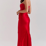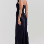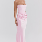 Το σατέν φόρεμα Serene αποπνέει κομψότητα με την εφαρμοστή γραμμή χωρίς τιράντες και τη ντραπέ σατέν μέση . Το λεπτό πράσινο χρώμα της μέντας το καθιστά ιδανικό για επίσημες βραδιές , γάμους και το κόκκινο χαλί .