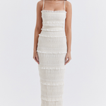 Ανακαλύψτε το Solara Maxi Abito , σχεδιασμένο για να λάμπει σε κάθε περίσταση. Με πτυχώσεις από πούλιες και μεταξωτό σατέν , αυτό το φόρεμα προσφέρει στενή εφαρμογή που αναδεικνύει τη σιλουέτα σας. Τα λεπτά βολάν , το σκίσιμο στην πλάτη και η ελαστική επένδυση εξασφαλίζουν άνεση και κομψότητα, καθιστώντας το την ιδανική επιλογή για γάμους ή πολυτελείς βραδιές .