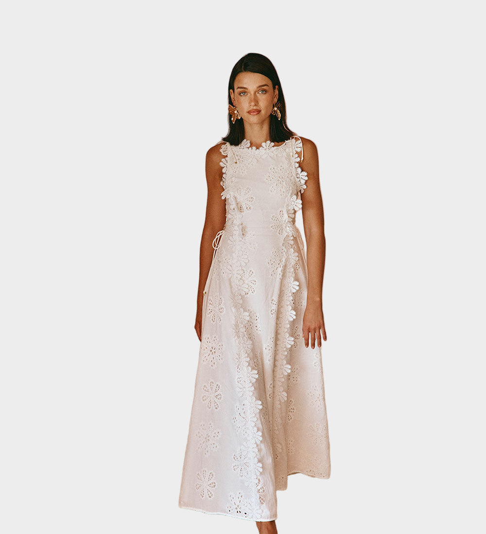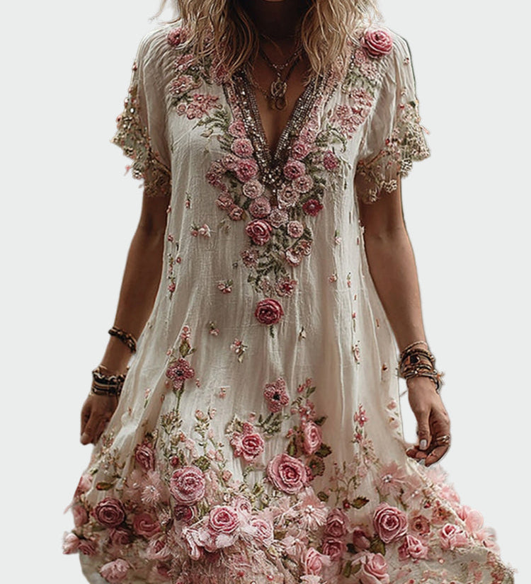 Φόρεμα σε Βίντατζ στυλ με κοντό μανίκι και Κομψό Λουλουδάτο Κέντημα