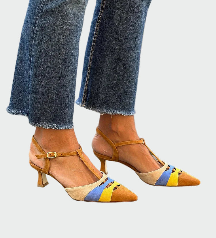 Χαμηλά τακούνια με πολύχρωμη λεπτομέρεια