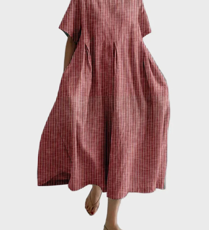Χαλαρό Ριγέ Φόρεμα με Τσέπες