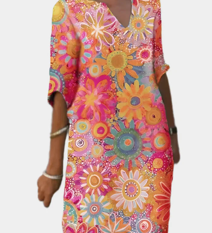Χρωματιστό Φόρεμα με Λουλουδάτο Σχέδιο