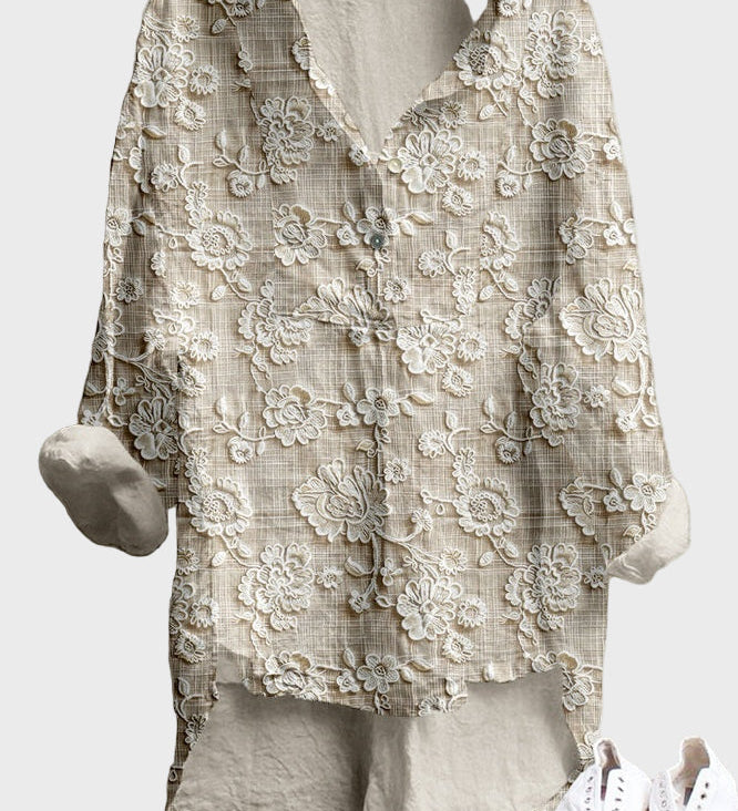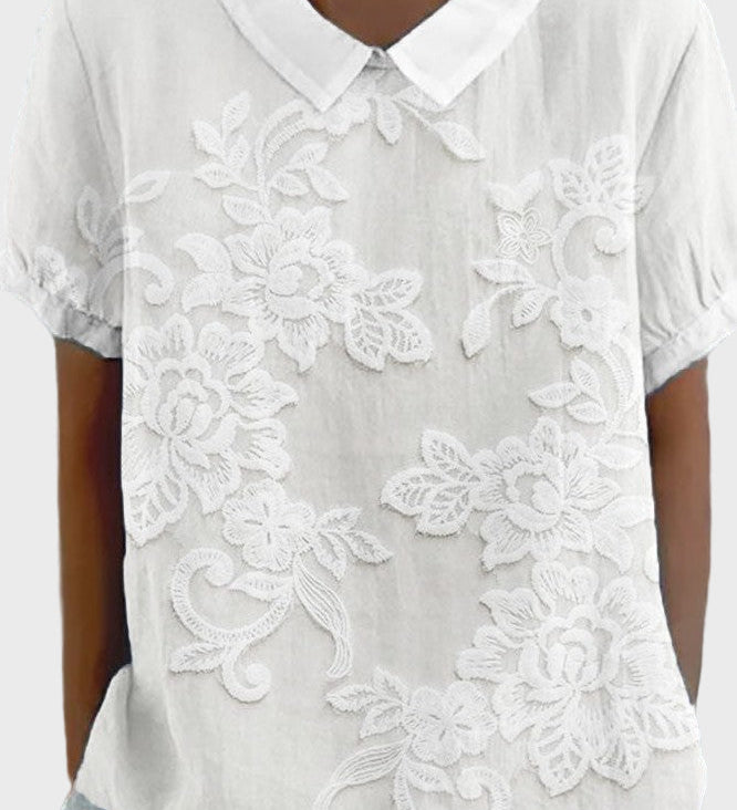 Μπλούζα με δαντελένιες λεπτομέρειες και φουσκωτά μανίκια