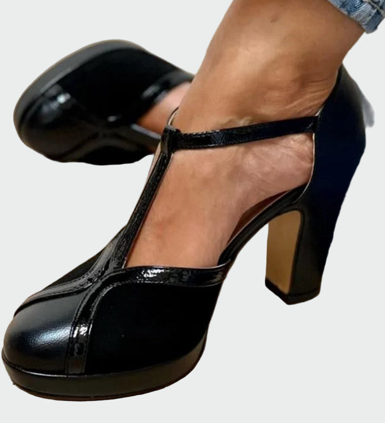 Γόβες με άνετο τακούνι και λουράκι σε σχήμα Τ