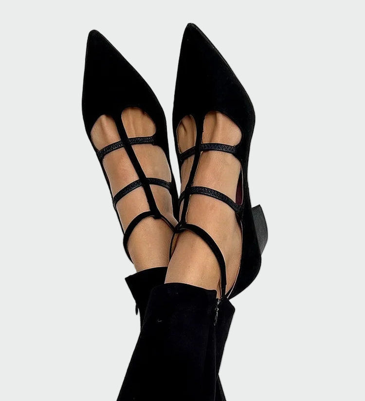 Γόβες με μυτερή μύτη και σταυρωτές λουρίδες