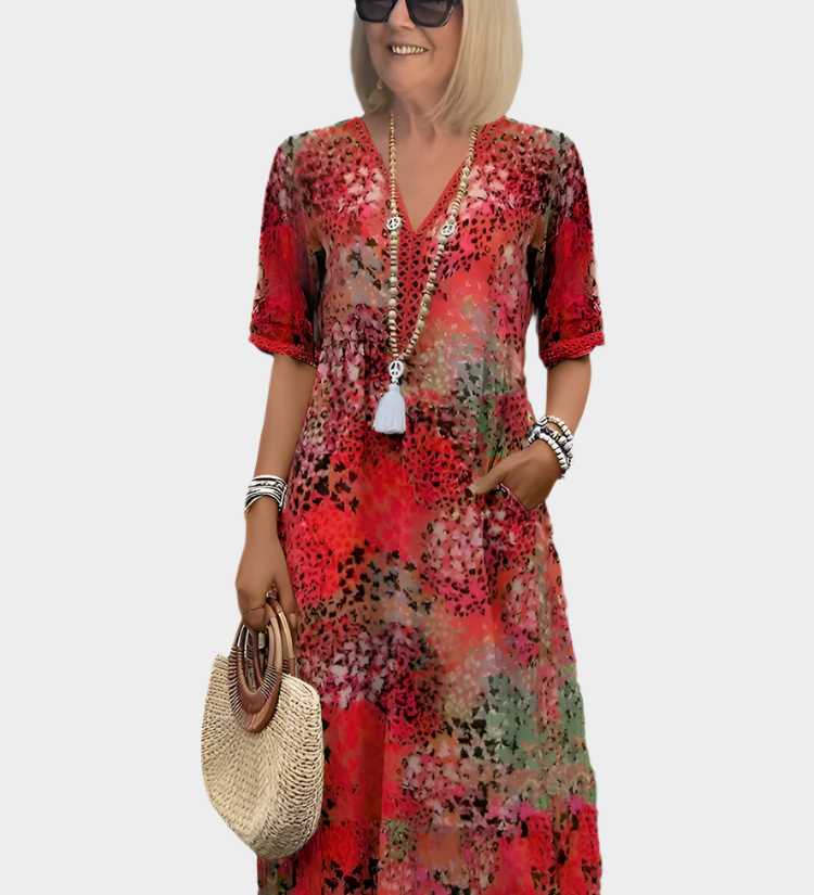Ζωντανό Midi Φόρεμα με Τσέπες