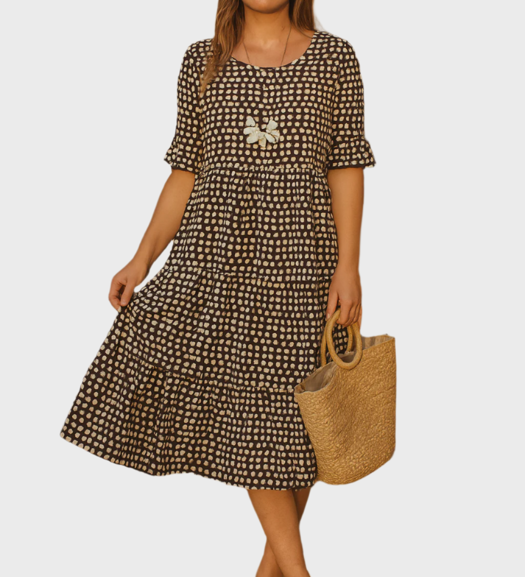 Καλοκαιρινό Φόρεμα με Ο-Λαιμό και Μέσο Μήκος