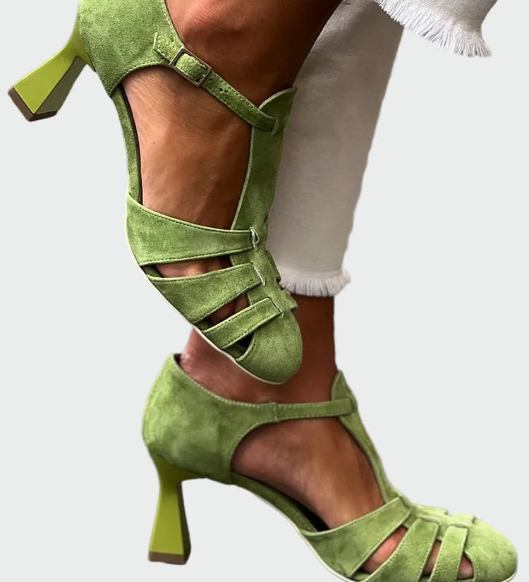 Τακούνια με μυτερή μύτη και χιαστί λουράκια