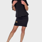 Αυτό το μίνι φόρεμα σε μαύρο χρώμα συνδυάζει την άνεση με το κομψό στυλ. Ο χαλαρός σχεδιασμός του με κοντά μανίκια το καθιστά ιδανικό για καθημερινές εμφανίσεις αλλά και πιο ανεπίσημες εξόδους. Συνδυάζεται άψογα με sneakers για μια μοντέρνα και νεανική εμφάνιση.