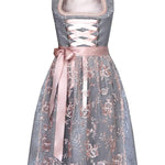 Αυτό το εντυπωσιακό φόρεμα dirndl συνδυάζει όμορφα στοιχεία παραδοσιακού φολκλορικού φεστιβάλ με μια μοντέρνα ρετρό αίσθηση. Η καλλιτεχνική δέσμευση και η λεπτή εφαρμογή δαντέλας στη φούστα, σε συνδυασμό με μια εντυπωσιακή ποδιά, τονίζουν τη μέση σας, κάνοντάς το ιδανική επιλογή για εκδηλώσεις όπως το Oktoberfest, τις εκκλησιαστικές τελετές ή τις εορταστικές οικογενειακές συγκεντρώσεις. Με το ύφασμα υψηλής ποιότητας από πολυεστέρα, αυτό το φόρεμα εξασφαλίζει άνεση και εύκολη συντήρηση, επιτρέποντάς σας να απολαύσετε κάθε στιγμή χωρίς ανησυχία.