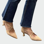 Τακούνια με μυτερή μύτη και χιαστί λουράκια