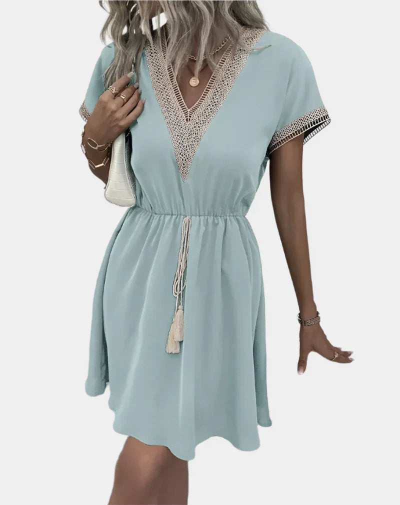 Ρομαντικό Boho Φόρεμα με Ζώνη και Ντεκολτέ V