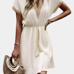 • Ραφιναρισμένες λεπτομέρειες από δαντέλα: Λαιμόκοψη V και μανίκια διακοσμημένα με χειροποίητη δαντέλα για μια χειροποίητη αίσθηση.