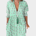Boho Φόρεμα με Άνετη Γραμμή και Φουσκωτά Μανίκια