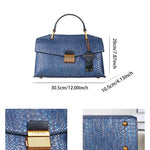 Απελευθερώστε την τολμηρή σας κομψότητα με αυτή την μαγευτική τσάντα, όπου η πολυτέλεια συναντά τη σύγχρονη κομψότητα. Λαμπεροί χρυσοί τόνοι διαπερνούν το πλούσιο, ανάγλυφο vegan δέρμα με σχέδιο φιδιού, δημιουργώντας μια εκθαμβωτική αλληλεπίδραση φωτός και υφής. Η δομημένη, τετράγωνη σιλουέτα εκπέμπει αυτοπεποίθηση, ενώ οι χρυσές λεπτομέρειες προσθέτουν μια πινελιά πολυτέλειας, συμπληρώνοντας τέλεια το βαθύ βασιλικό μπλε χρώμα. Είτε κάνετε μια εντυπωσιακή είσοδο είτε αναβαθμίζετε το καθημερινό σας στυλ, αυτή η τσάντα είναι το κομμάτι δήλωσής σας—εύκολα κομψή, αναμφισβήτητα ξεχωριστή και ατέλειωτα μαγευτική.