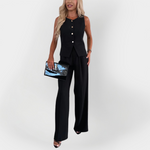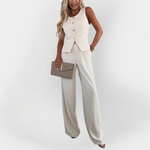 Το αγαπημένο μας κομψό σετ είναι ο απόλυτος συνδυασμός στυλ, άνεσης και διακριτικής πολυτέλειας – ιδανικό για γυναίκες που θέλουν να ξεχωρίζουν με κομψότητα σε κάθε τους εμφάνιση. Το αμάνικο τοπ σε συνδυασμό με το παντελόνι με άνετη γραμμή δημιουργεί μια σικ και μοντέρνα εμφάνιση για όλες τις ώρες.