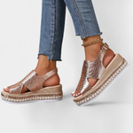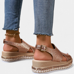 Έντονο στυλ με μια φυσική πινελιά. Τα σανδάλια Felisa συνδυάζουν την υφή σε σχήμα κροκόδειλου με μια υφασμένη βάση και μια αυλακωτή πλατφόρμα που προσφέρει ύψος χωρίς να θυσιάζει τη σταθερότητα. Ο ανοιχτός και ευέλικτος σχεδιασμός τους τα καθιστά το ιδανικό αξεσουάρ για τις ζεστές μέρες.