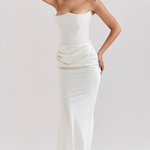 Βυθιστείτε στη σιωπή και λάμψτε με κομψότητα με το σατέν φόρεμα Serene. Αυτό το εκθαμβωτικό φόρεμα διαθέτει εφαρμοστή γραμμή χωρίς τιράντες και ντραπέ μέση που κολακεύει τη σιλουέτα σας.