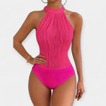 Κομψό και εντυπωσιακό, αυτό το ζωηρό ροζ ολόσωμο κορμάκι με λαιμόκοψη και διακριτικό ρούσινγκ αναδεικνύει τη θηλυκότητα με στυλ. Ιδανικό για παραλία ή πισίνα, προσφέρει εφαρμογή που κολακεύει και άνεση όλη μέρα.