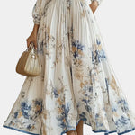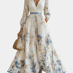 Μακρύ Φόρεμα με Φουσκωτά Μανίκια και V-Λαιμόκοψη