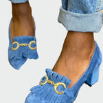 Γόβα με λεπτομέρεια φράντζας και χρυσή αγκράφα