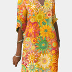 Ζωντανέψτε την εμφάνισή σας με αυτό το εντυπωσιακό πολύχρωμο φόρεμα με λουλουδάτα μοτίβα. Ιδανικό για τις καλοκαιρινές σας εξορμήσεις, αυτό το φόρεμα συνδυάζει χαρούμενη διάθεση και ελευθερία κινήσεων σε ένα μοναδικό σχέδιο που τραβάει τα βλέμματα.