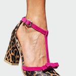 Αυτές οι κομψές γόβες με animal print και λεπτομέρειες σε έντονο φούξια συνδυάζουν τολμηρό στυλ με θηλυκή φινέτσα. Ο μοναδικός σχεδιασμός τους τις καθιστά ιδανικές για όσες θέλουν να ξεχωρίζουν σε κάθε εμφάνιση.