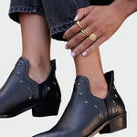 Μποτάκια με διακριτικές μεταλλικές λεπτομέρειες που χαρίζουν μια μοντέρνα πινελιά στο κλασικό σχέδιο. Η χαμηλή φτέρνα προσφέρει άνεση στην καθημερινότητα, ενώ η κομψή γραμμή τους τα κάνει ιδανικά για όλες τις περιστάσεις. Ένα ζευγάρι που συνδυάζει στιλ και πρακτικότητα.