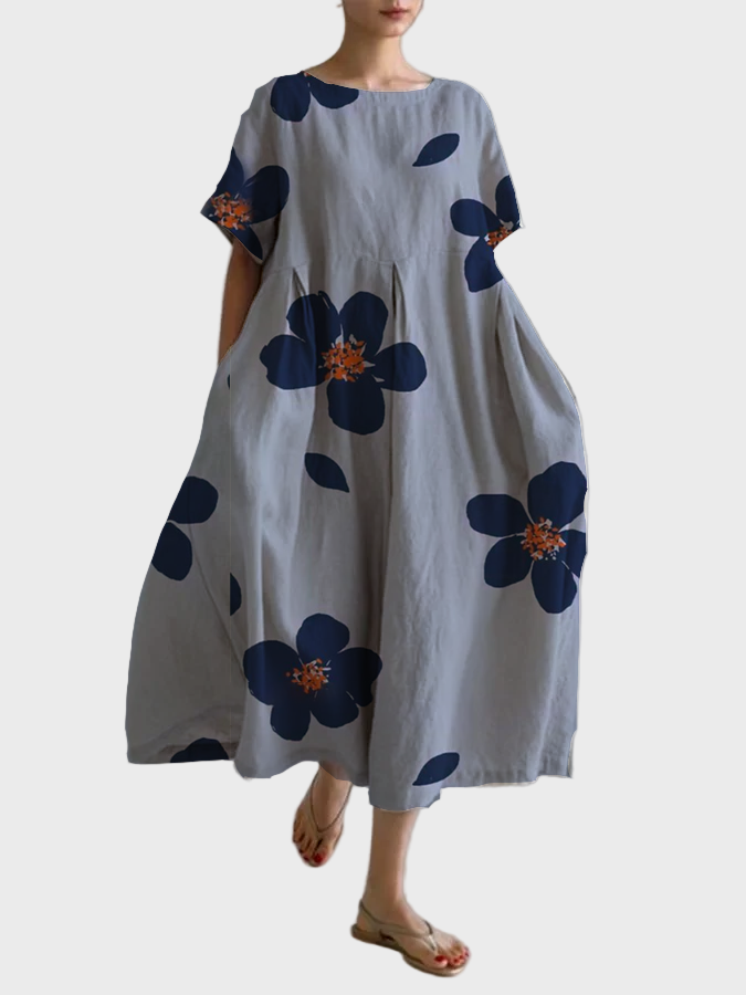 Το Grey Blossom Flow Dress συνδυάζει μίνιμαλ γκρι τόνο με εντυπωσιακά navy λουλούδια που προσθέτουν ζωντάνια και στυλ. Με χαλαρή γραμμή και ελαφρύ ύφασμα, είναι η ιδανική επιλογή για άνεση και κομψότητα σε κάθε περίσταση.