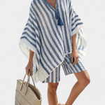 Σετ ριγέ Nancy με μπλούζα oversized και κομψά σορτς
