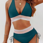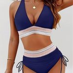 Αναδείξτε το στιλ σας με αυτό το μπλε μπικίνι υψηλής μέσης και ρετρό πλέξη στη μέση. Προσφέρει μοναδικό συνδυασμό θηλυκότητας, στήριξης και άνεσης – ιδανικό για παραλία ή πισίνα.