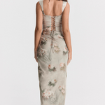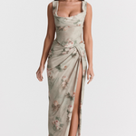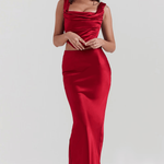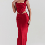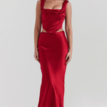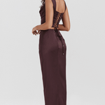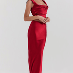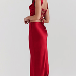 Η ντραπέ λαιμόκοψη και η κορδόνια στην πλάτη εξασφαλίζουν τέλεια εφαρμογή, καθιστώντας το μια πολυτελή επιλογή για κομψές, προσαρμοσμένες εμφανίσεις.