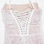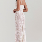 Αυτό το μακρύ δαντελένιο φόρεμα διαθέτει κομψή σιλουέτα μέχρι το πάτωμα , ρυθμιζόμενη πλάτη από κορσέ και κορδόνια στο πίσω μέρος για κολακευτική εφαρμογή. Ιδανικό για γάμους ή βραδινές εκδηλώσεις , ο θηλυκός και ντελικάτος σχεδιασμός του προσφέρει διαχρονική κομψότητα .