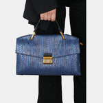 Απελευθερώστε την τολμηρή σας κομψότητα με αυτή την μαγευτική τσάντα, όπου η πολυτέλεια συναντά τη σύγχρονη κομψότητα. Λαμπεροί χρυσοί τόνοι διαπερνούν το πλούσιο, ανάγλυφο vegan δέρμα με σχέδιο φιδιού, δημιουργώντας μια εκθαμβωτική αλληλεπίδραση φωτός και υφής. Η δομημένη, τετράγωνη σιλουέτα εκπέμπει αυτοπεποίθηση, ενώ οι χρυσές λεπτομέρειες προσθέτουν μια πινελιά πολυτέλειας, συμπληρώνοντας τέλεια το βαθύ βασιλικό μπλε χρώμα. Είτε κάνετε μια εντυπωσιακή είσοδο είτε αναβαθμίζετε το καθημερινό σας στυλ, αυτή η τσάντα είναι το κομμάτι δήλωσής σας—εύκολα κομψή, αναμφισβήτητα ξεχωριστή και ατέλειωτα μαγευτική.